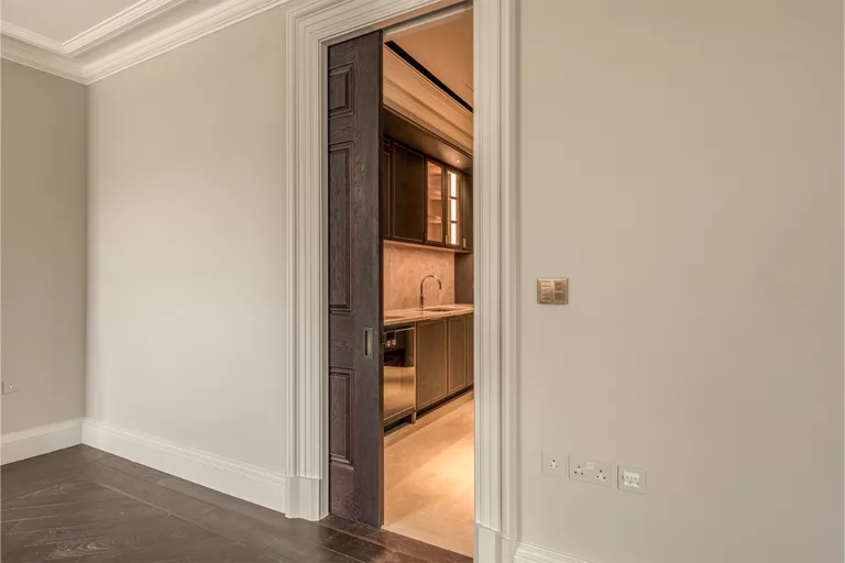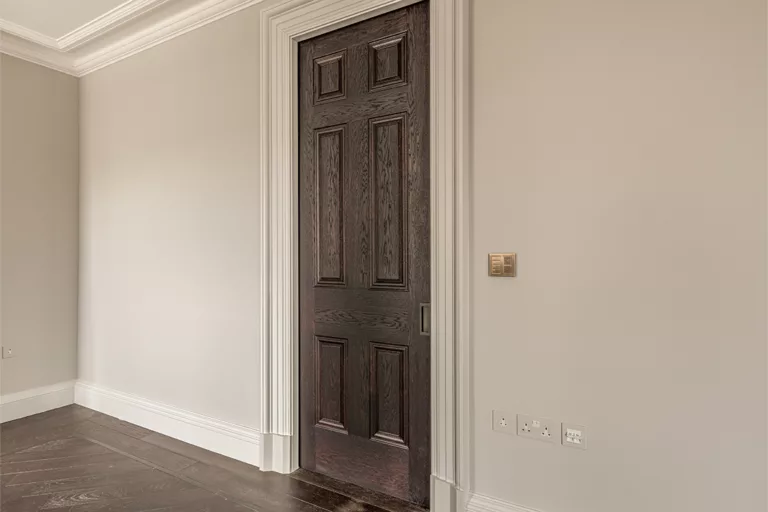 These single and double sliding door sets are designed to meet strict fire safety standards, providing peace of mind for both homeowners and designers. Our frames are supplied pre-primed, allowing them to be painted with your preferred finish and color on-site. In addition, these interior sliding door frames can be manufactured from various types of hardwood and customized with bespoke finishes upon request, ensuring seamless integration into your design vision.